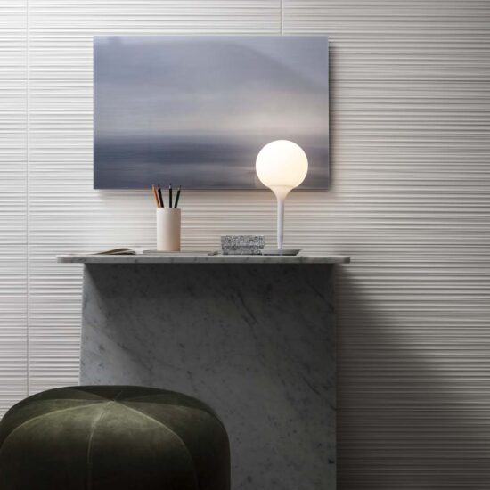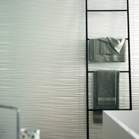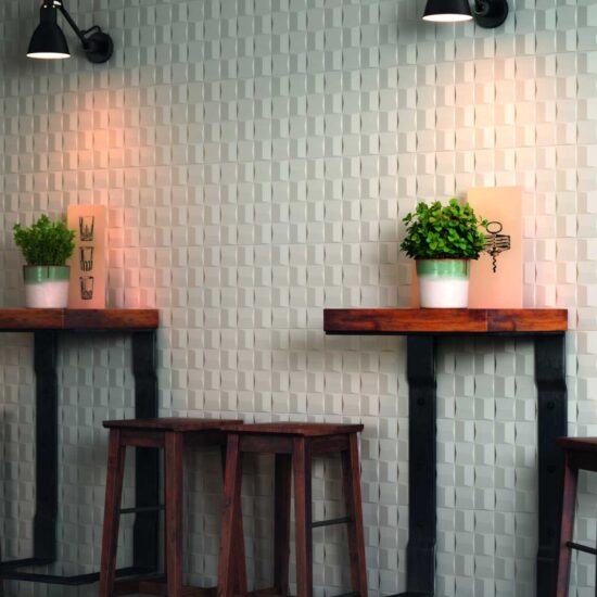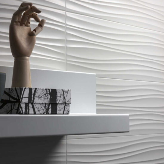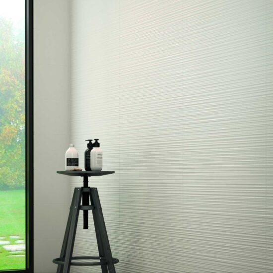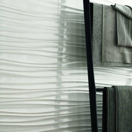 Με το πλακάκι Absolute White της Marazzi, η χρήση του λευκού σε επενδύσεις τοίχων αποκτά πρωτοφανείς εκφραστικές δυνατότητες. Τρεις τρισδιάστατες δομές: Twist and Cube, σε γυαλιστερή και σατέν εκδόσεις, και Fiber, μόνο ματ, μοντελοποιούν το φως, βελτιώνουν τα χρώματα και δημιουργούν δυναμικούς κραδασμούς με σχέδια σχεδίασης.
