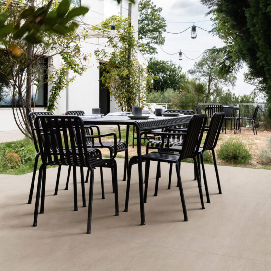 Concrete-effect surfaces and refined graphic patterns for residential and commercial projects.