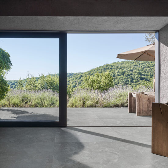 3D stone-effect porcelain, for continuous in&outdoor spaces with a modern look
