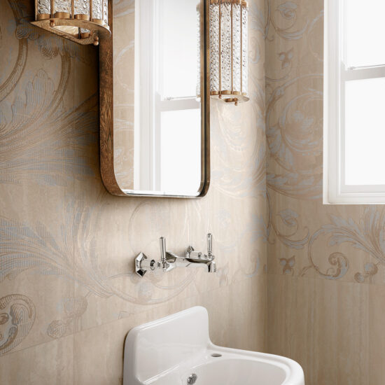 Συλλογή Mystone Travertino της Marazzi .Κλασικό, Ναβόνα και Ασήμι: τρία χρώματα – ανοιχτό μπεζ, ανοιχτό γκρι και κρέμα – συνδυάζονται με τρία μοτίβα για να αναπαράγουν πέτρα. Τρία ψηφιδωτά και τέσσερα μεγέθη – 90χ180, 60χ60, 60χ120 και 30χ60 – χώροι είναι ιδανικοί για αντιπαραθέσεις μεταξύ χρωμάτων και γεωμ. Δύο φινιρίσματα, ένα πιο μαλακό και θερμό και το άλλο πιο γυαλιστερό και εκφραστικό, επιτρέποντας νέες σχεδιαστικές δυνατότητες.